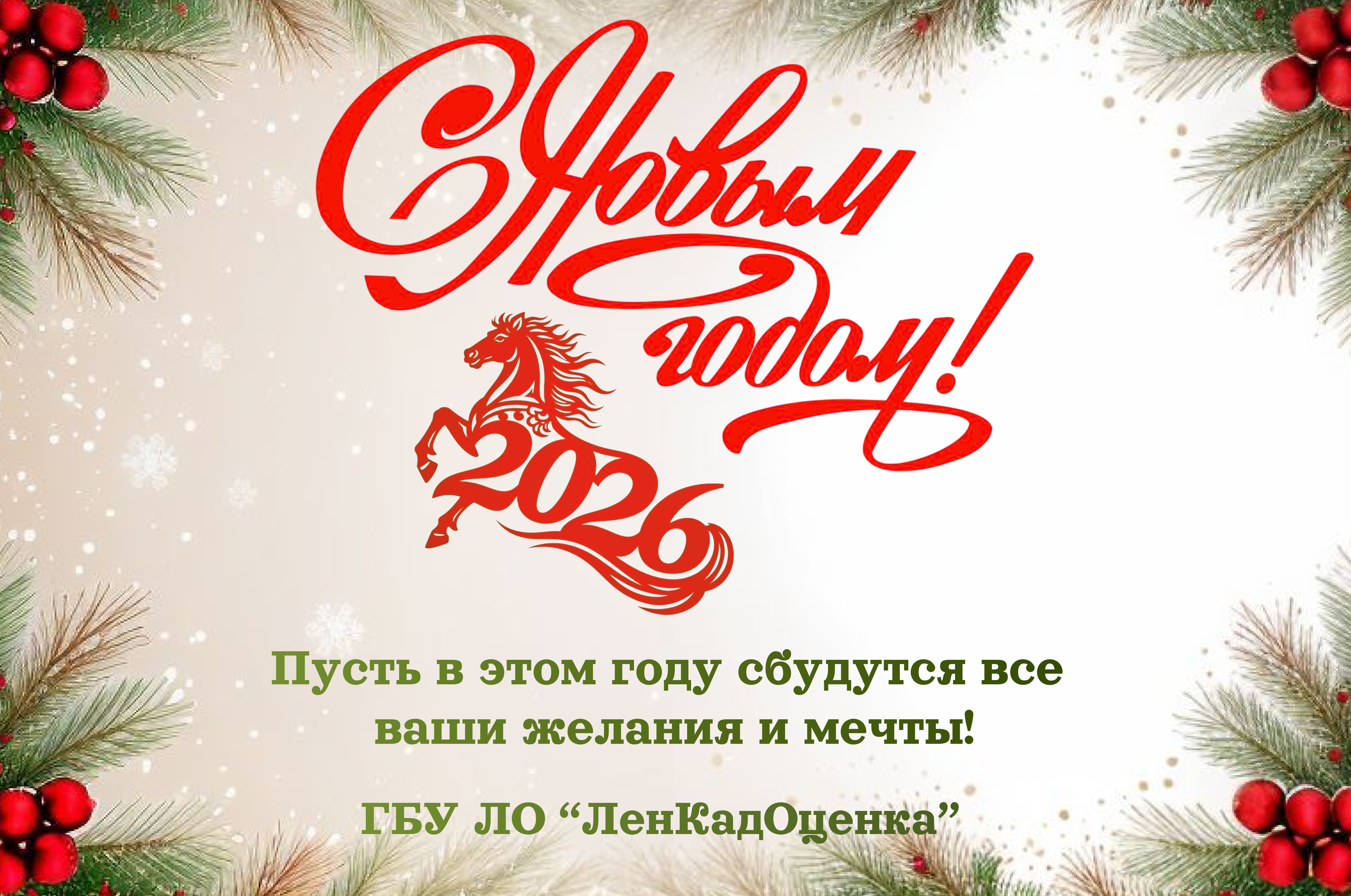 ГБУ ЛО "ЛенКадОценка" поздравляет с наступающим 2026 годом!